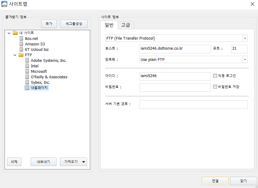 - 유사 소프트웨어로 무료로 사용가능한 파일질라 FTP 프로그램을 설치해도 무관한다.