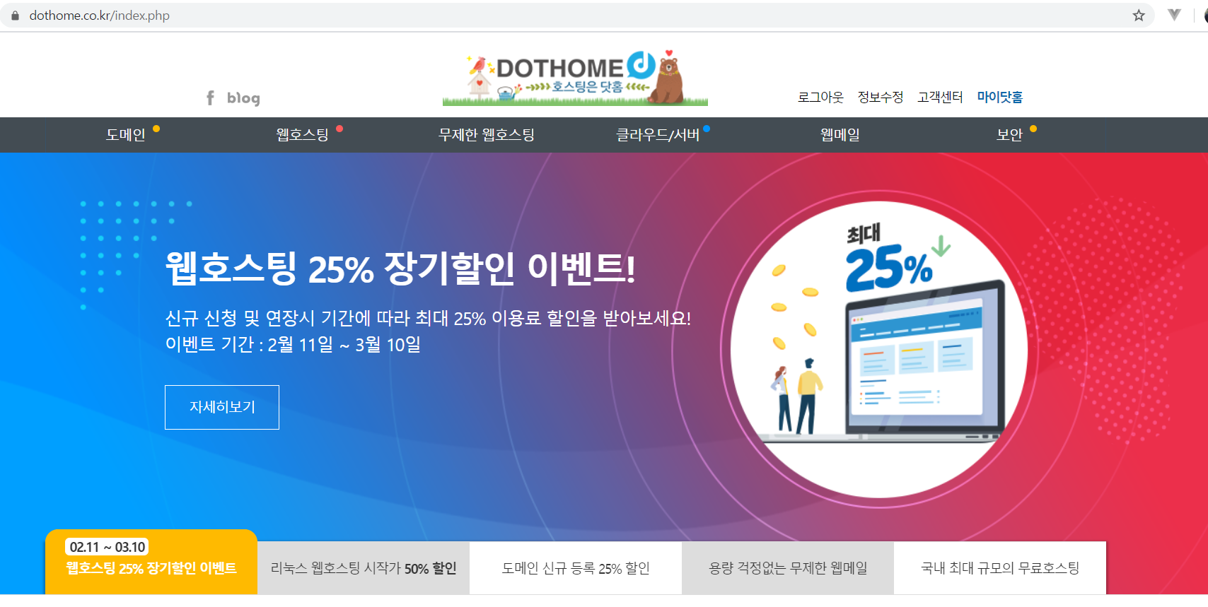 - 아래 닷홈 무료 호스팅 사이트에 접속한다.